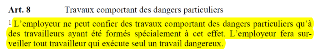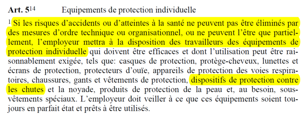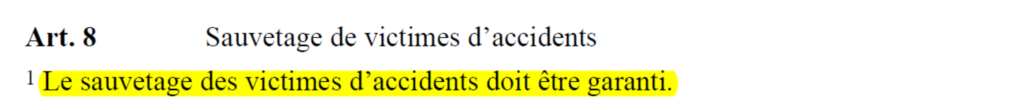 L’article 8 de l’OTConst stipule que le sauvetage des victimes d’accidents doit être garanti.