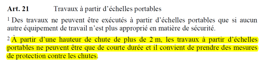 A partir d’une hauteur de 2m, sur les toits et les échelles mobiles,