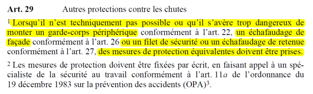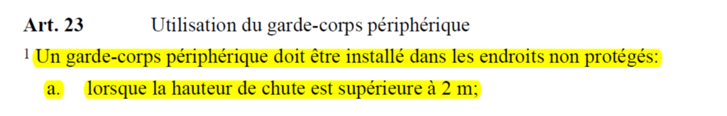 il faut prendre des mesures de protection contre les chutes.